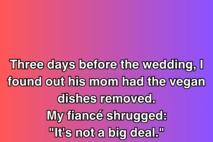 Three days before the wedding, I found out his mom had the vegan dishes removed. My fiancé shrugged: “It’s not…