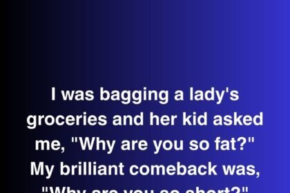 I was bagging a lady’s groceries and her kid asked me, “Why are you so…