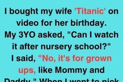 I bought my wife Titanic on video for her birthday. My 3-year-old asked, “Can I watch it after nursery school?”…
