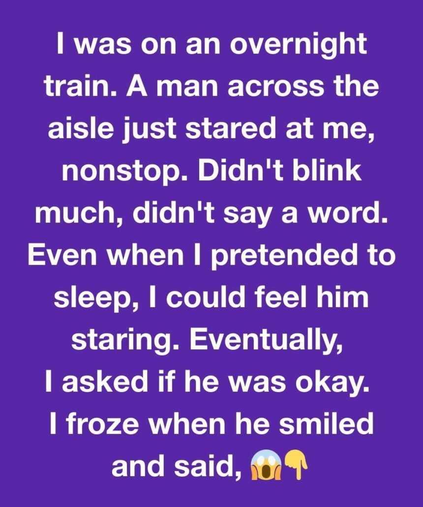 I was on an overnight train and had a window seat. A man across the aisle just stared at me, nonstop, for hours. Didn’t blink much, didn’t say a word, just watched.