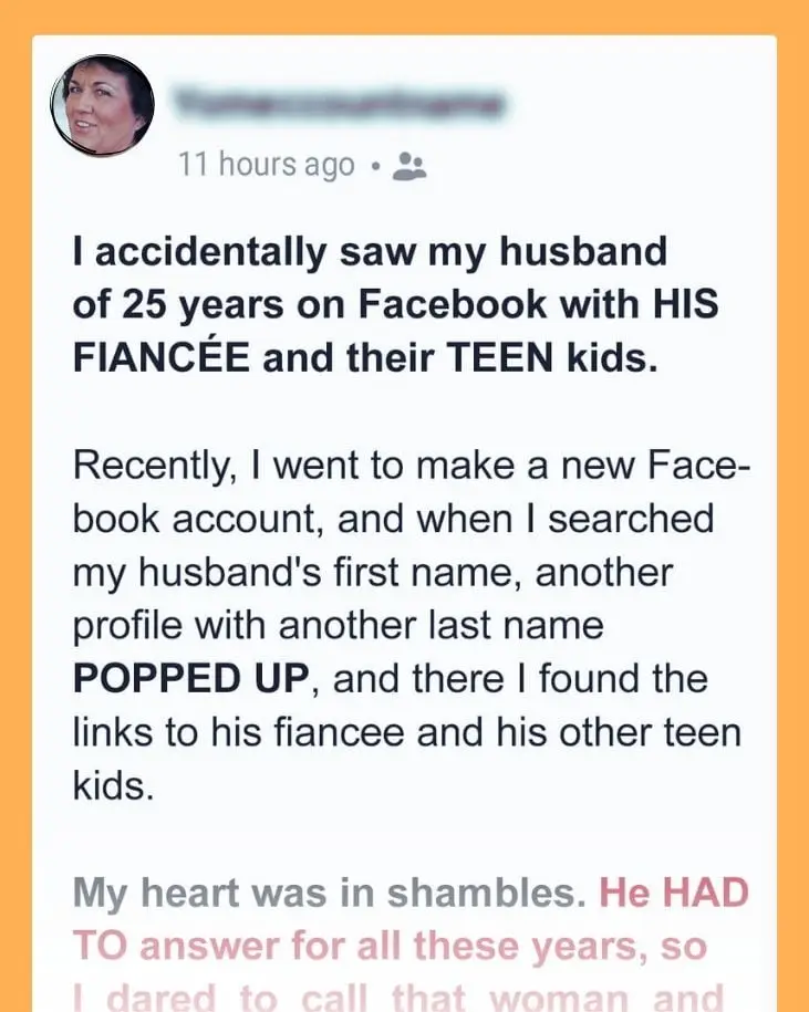 When it was okay to tell him, she confronted her husband, who denied everything, even after she had shown him the social media posts and pictures taken by an investigator. He even accused the woman of being insane.