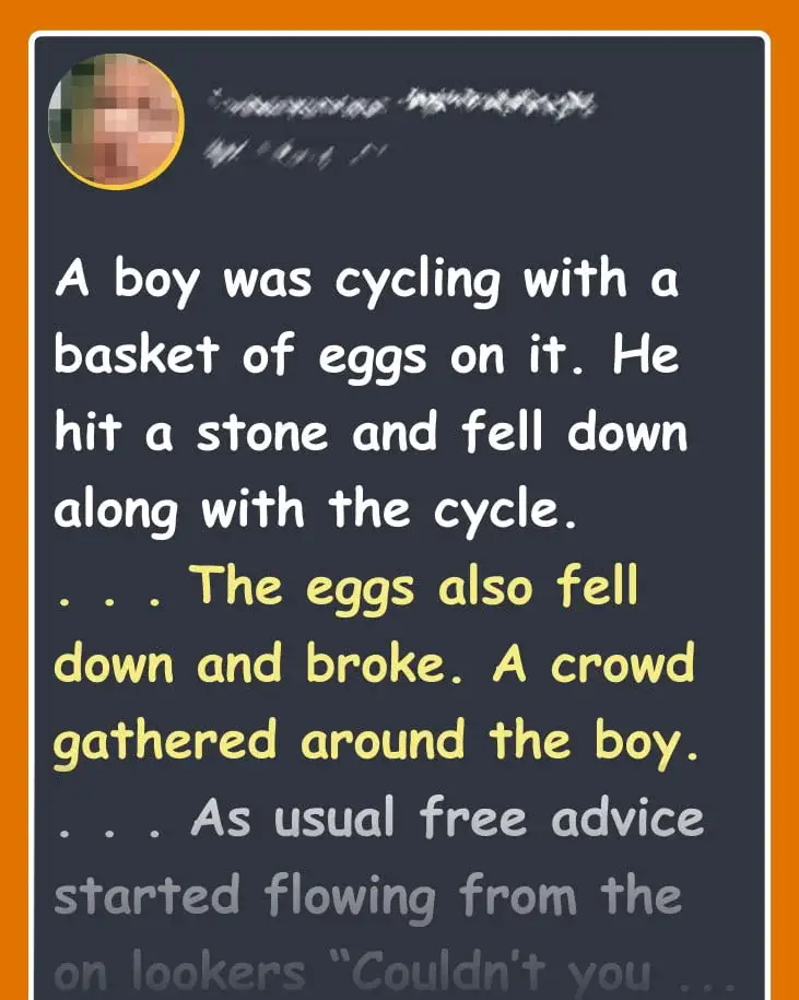 The eggs also fell down and broke. A crowd gathered around the boy.