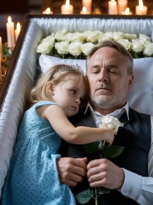 The wake was quiet, filled with soft candlelight and the gentle fragrance of lilies. My little sister Lily stood beside our father’s coffin, holding the edge as if keeping him close for just a little longer. She didn’t cry or speak—she simply stared, her innocent eyes full of hope and confusion.