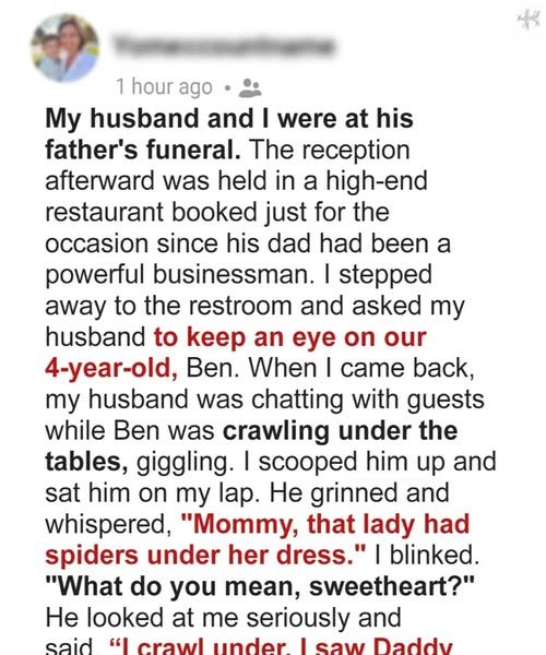 They say children see the world without filters — and sometimes, that pure sight uncovers truths adults spend years refusing to see. It happened on one of the hardest days of my life — the funeral of my father-in-law, a man I deeply respected. Grief hung in the air like fog — thick, unmoving, heavy with everything we couldn’t say.