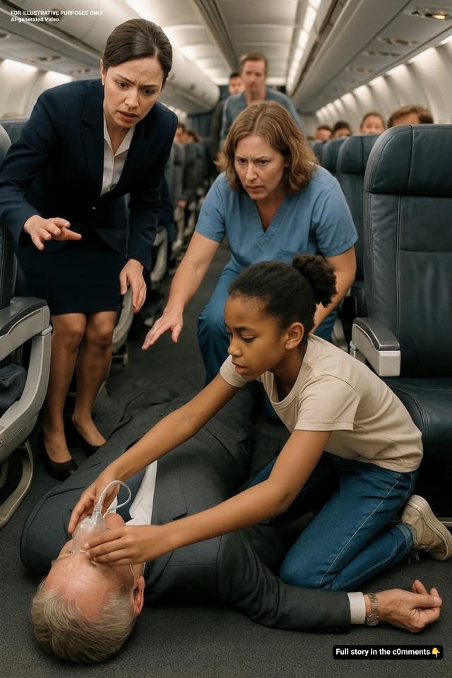 “Sweetheart, you need to sit down!” a flight attendant protested. “I know what to do!” Tiana said firmly, her small voice steady. “Tilt his head, not too much—keep his airway open!”