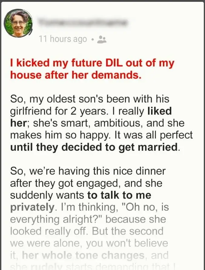 A 48-year-old female revealed on Reddit in 2023 that her relationship with her future daughter-in-law fell apart after an interaction they had.