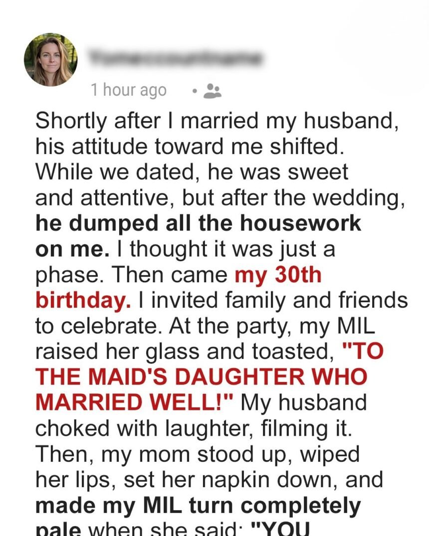 At My Birthday Party My MIL Toasted ‘To the Maid’s Daughter Who Married Well’ – My Mom’s Epic Response Put Her in Place
