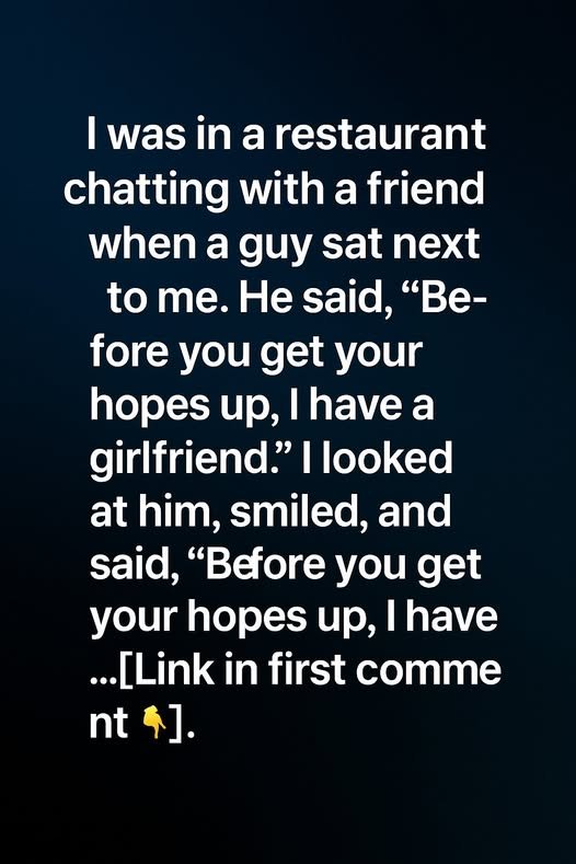 I was in a restaurant chatting with a friend when a guy sat next to me. He said, “Before you get your hopes up, I have a girlfriend.” I looked at him, smiled, and replied, “Before you get your hopes up, I have dreams bigger than this conversation.”
