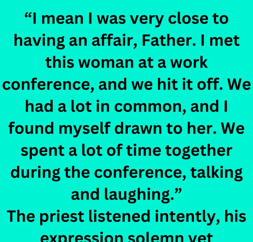 “I mean I was very close to having an affair, Father. I met this woman at a work conference, and we hit it off. We had a lot in common, and I found myself drawn to her.