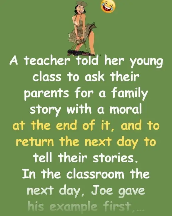 A teacher told her young class to ask their parents for a family story with a moral at the end of it, and to return the next day to tell their stories.