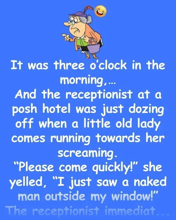 And the receptionist at a posh hotel was just dozing off when a little old lady comes running towards her screaming.