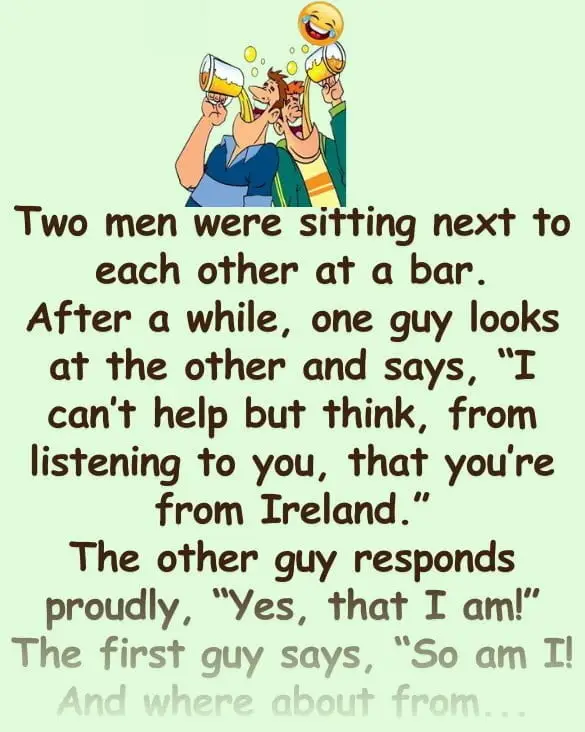 After a while, one guy looks at the other and says, “I can’t help but think, from listening to you, that you’re from Ireland.”