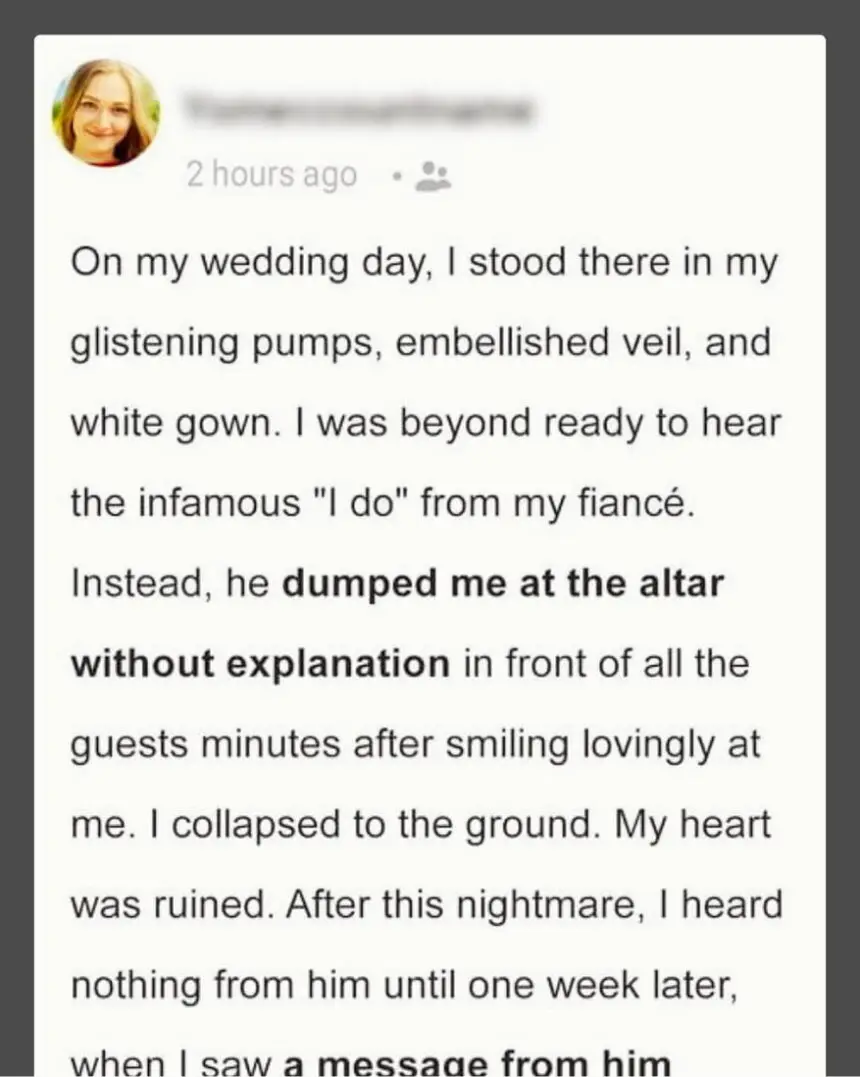 A woman was excited to exchange vows with her groom on their big day but soon found that it would be one of the most heartbreaking days of her life as her husband-to-be did something she could never have expected, the woman admitted to feeling anxious on her wedding day, but not in the wrong way.