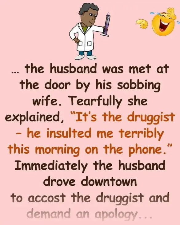 … the husband was met at the door by his sobbing wife. Tearfully she explained, “It’s the druggist – he insulted me terribly this morning on the phone.”