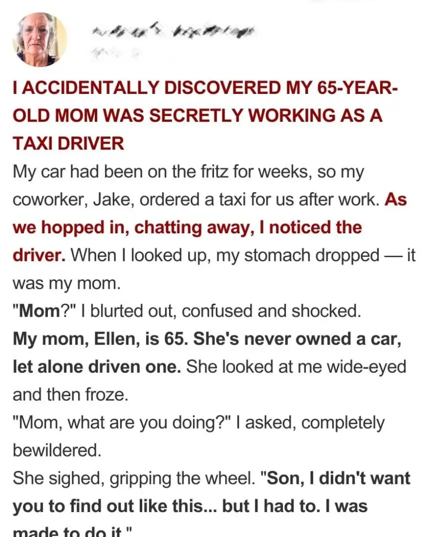 I always thought I knew everything about my mom. At 65, she was the rock of our family, but all that changed the night I unknowingly hopped into the back seat of a taxi she was driving.