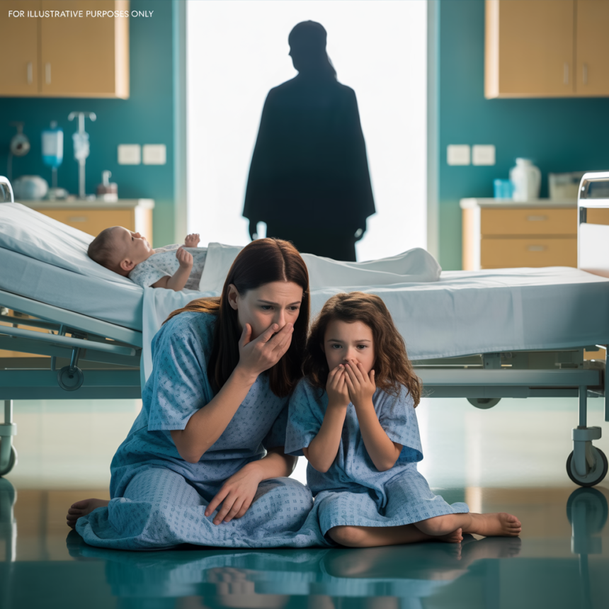Instead I felt the instinctive jolt of danger and obeyed. My body still ached from labor, my legs still weak, but I followed her to the floor and crawled beneath the metal frame. The cool tiles pressed against my hips as we squeezed together in the narrow space.