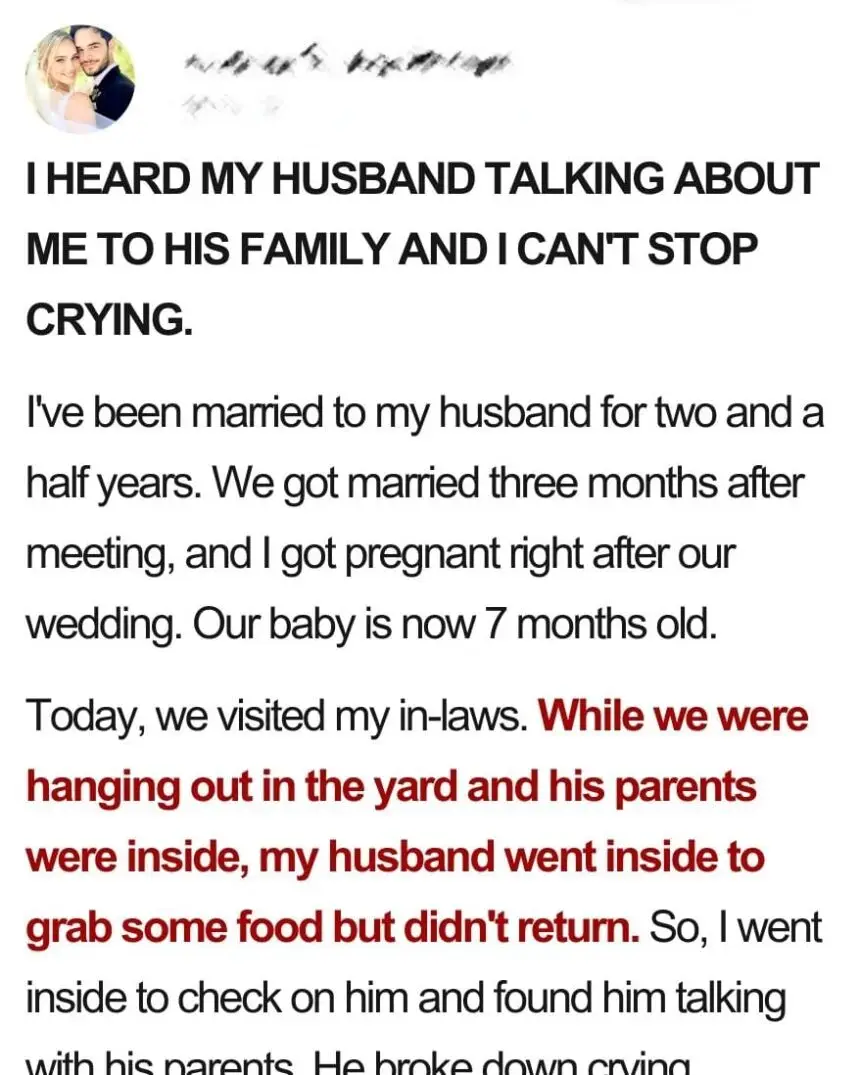 I Heard My Husband Talking about Me to His Family and I Can’t Stop Crying