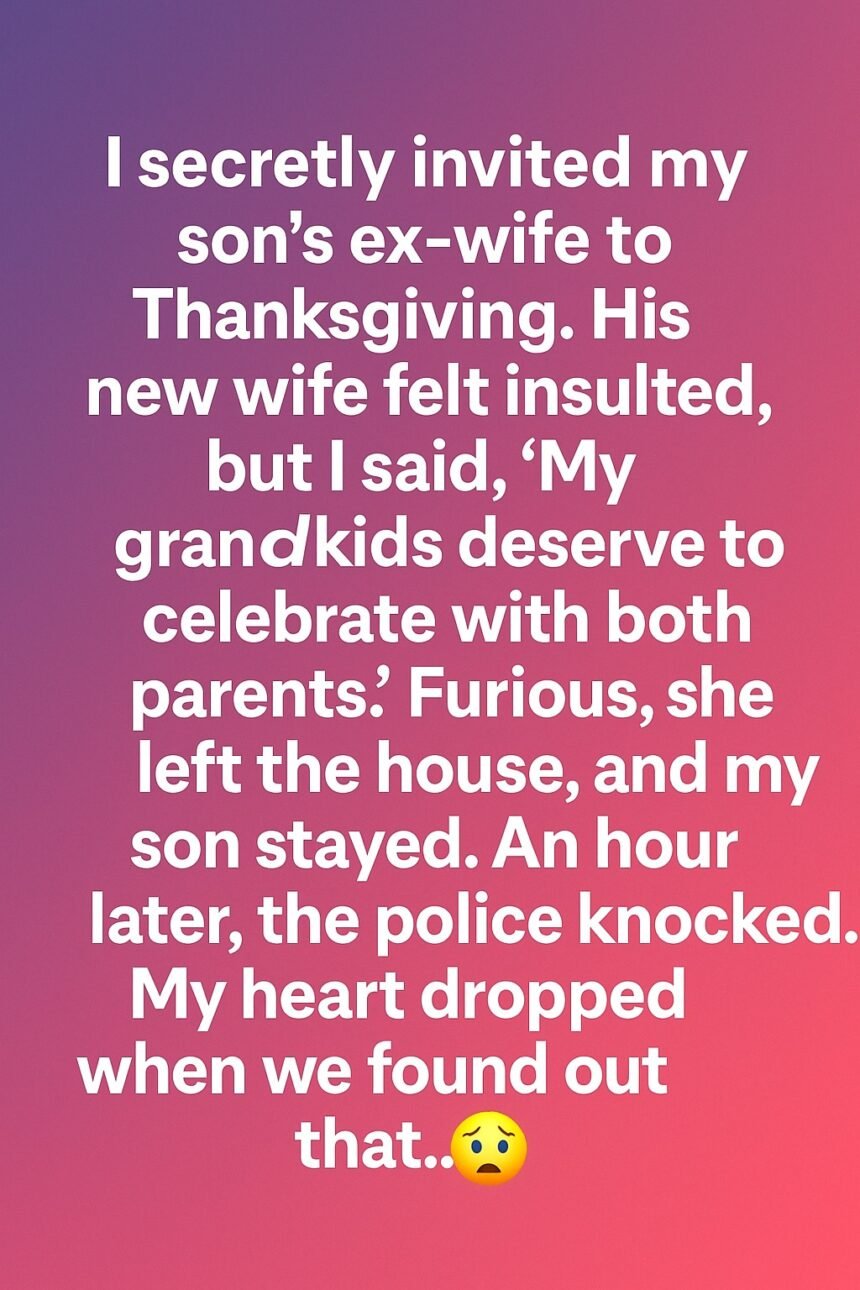 I only wanted peace. After years of co-parenting struggles, I thought one family meal could bring healing for the children. My son’s ex-wife arrived with warm pies and nervous smiles, grateful for the invitation.