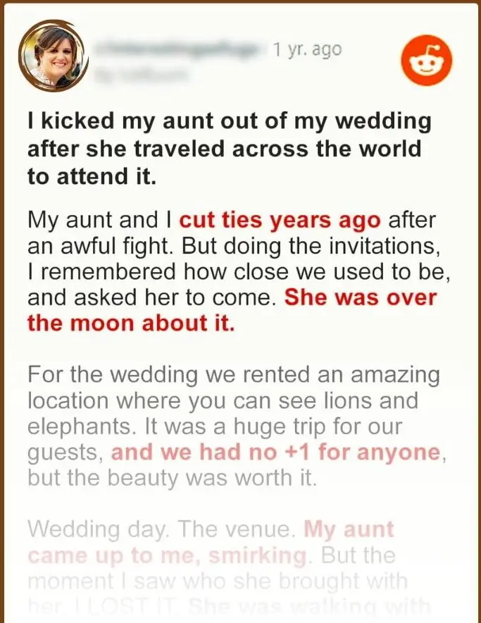 I Kicked My Aunt Out of My Wedding after She Traveled across the World to Attend It