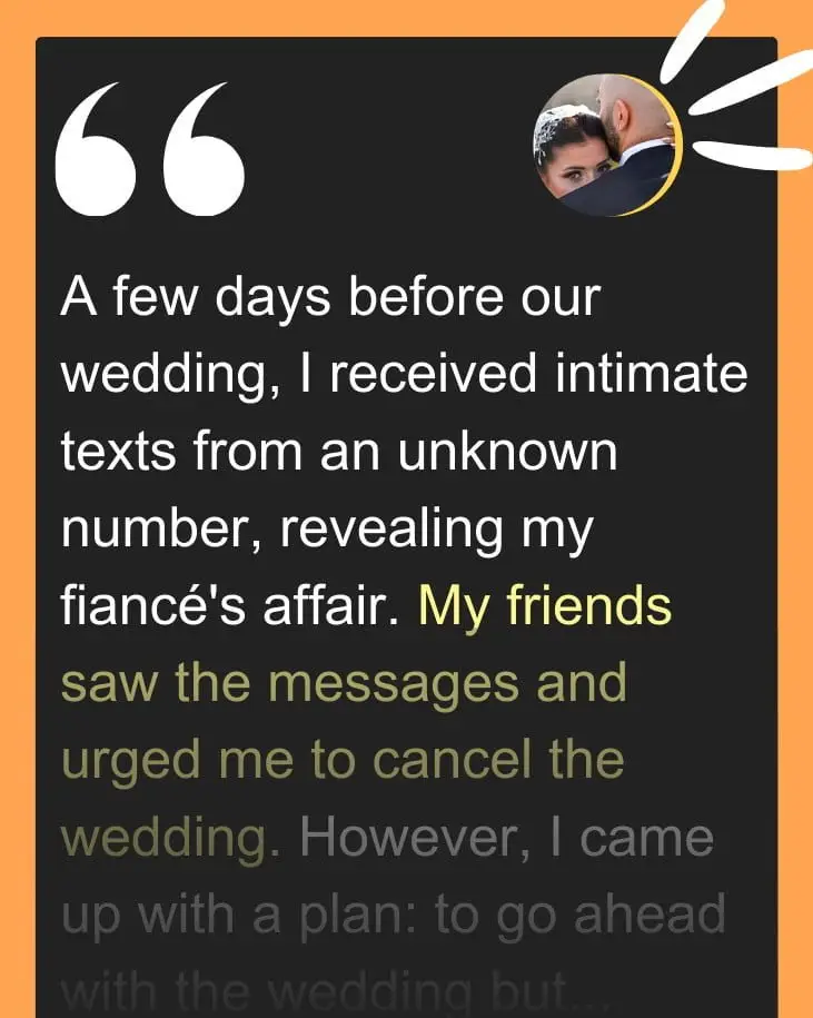 Just a few days before her wedding, she found out about her fiancé’s infidelity.