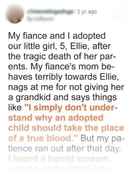 These statements made OP furious, and she pulled the mom to the side to ask her to avoid making them because she knew how much it meant to Ellie to be part of the family. “She kept saying I was being rude to my new family,” OP disclosed.