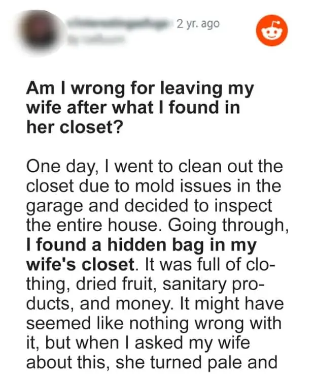 I Want to Leave My Wife after Finding Her Hidden Bag in the Closet