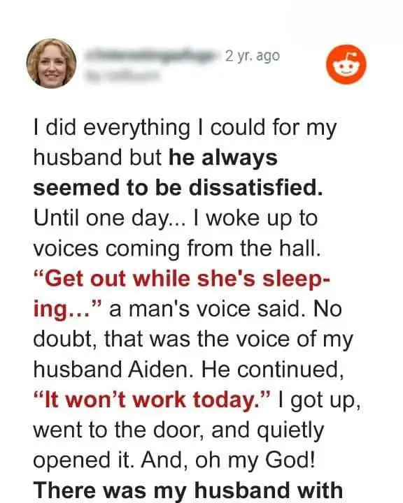 One day, I woke up to my husband’s voice in the hall along with a female voice.