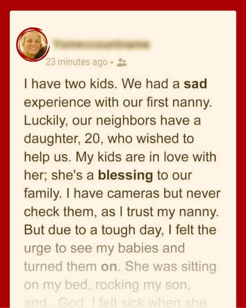 She fully trusted her nanny and never checked the cameras, but at one time, she was having a bad day and decided to check on her kids. She recalled: