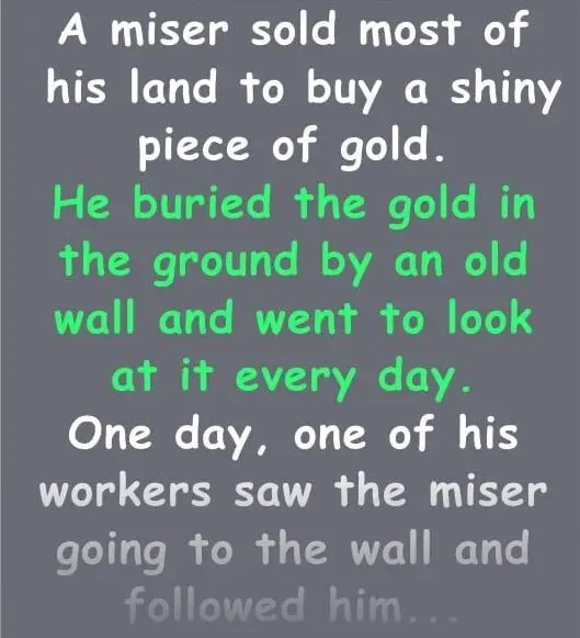 The miser cried and cried in anger and sadness. A neighbor saw the miser crying and found out what was wrong.