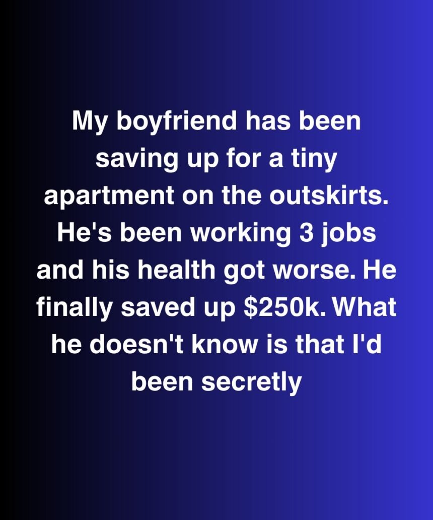 My boyfriend has been saving up for a tiny apartment on the outskirts. He’s been working 3 jobs and his health got worse. He finally saved up $250k.