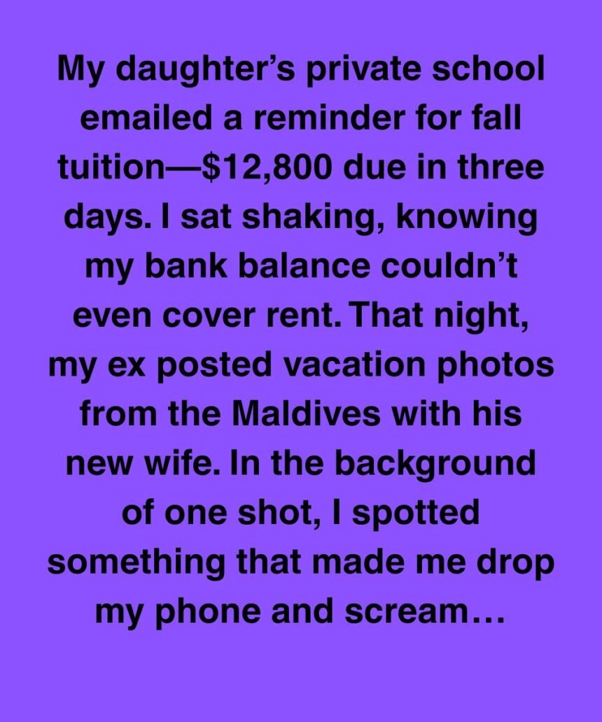 My daughter’s private school emailed a reminder: $12,800 tuition due in three days. My bank account couldn’t even cover rent. That same night, my ex posted vacation photos from the Maldives—with his new wife.