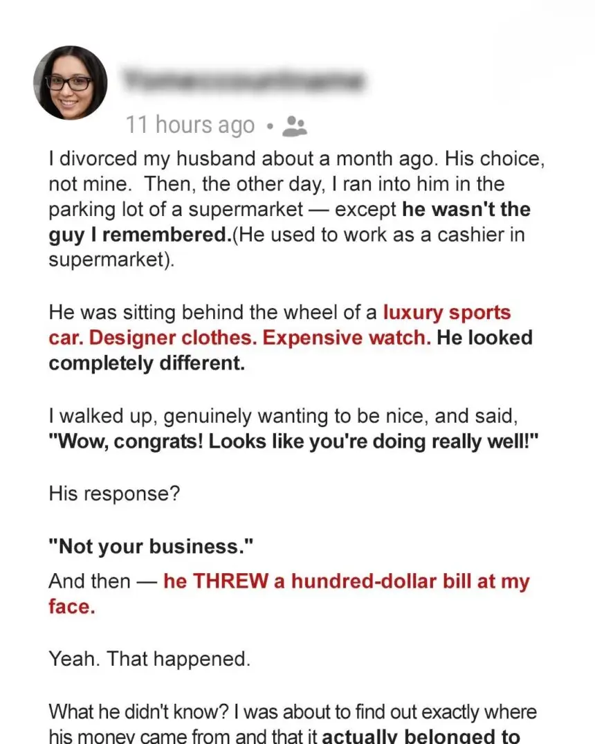 After all, I was a veterinarian, and he was a cashier. I’d never minded; we were high school sweethearts, and money wasn’t supposed to matter. I had been happy in our little apartment… until he asked for a divorce.