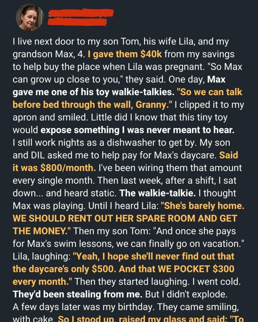 I raised my son alone and poured everything I had into him—even my retirement savings. But a simple toy walkie-talkie from my grandson exposed a truth I never imagined: all my sacrifices meant far less to the man I raised. Mothers who have given everything for their families need to hear this.