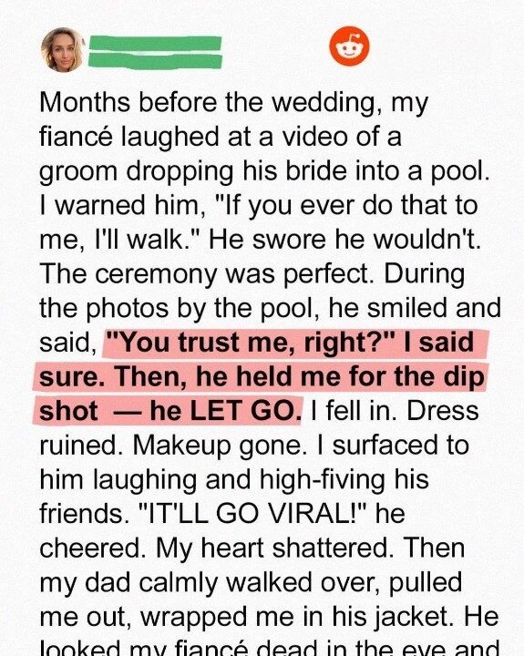 The shock of cold water slammed into me, the weight of my gown dragging me down. By the time I surfaced, gasping and smeared with mascara, Dylan was on the edge of the pool, high-fiving his groomsmen. “That’s going viral!” he crowed.