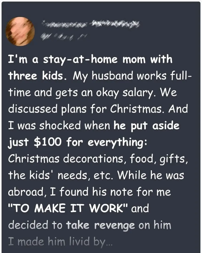 When Oliver handed me $100 and told me to make Christmas “work,” I decided enough was enough. After years of his selfishness and absurd demands, I came up with a plan to show him exactly what happens when you treat your wife like an afterthought.