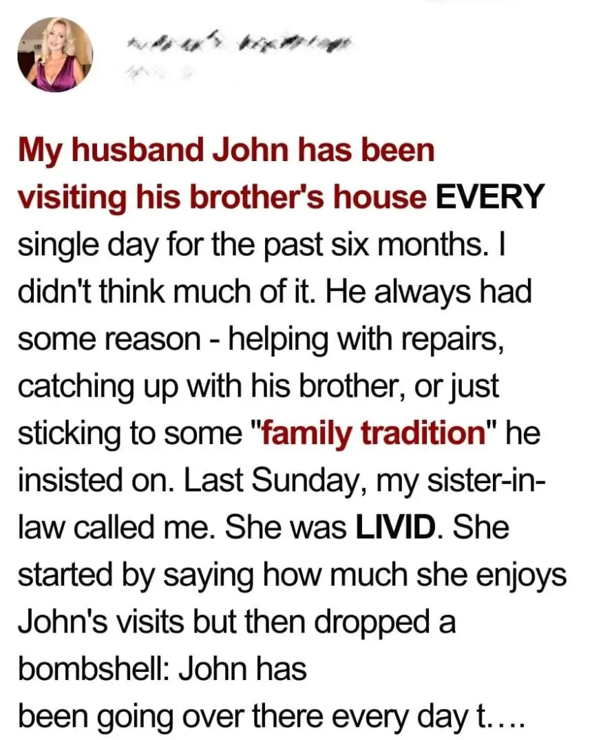 My Husband Had Been Visiting His Brother’s House Daily for 6 Months — When My SIL Called Me Last Sunday, I Was Shocked