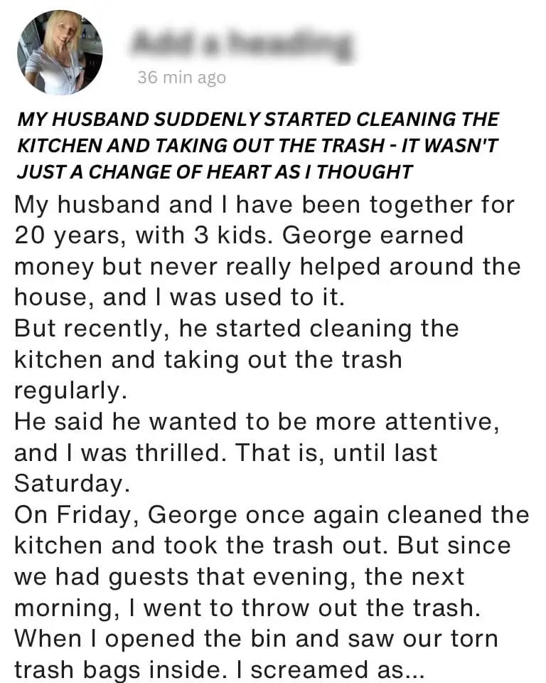 It felt like a new chapter. Twice, sometimes three times a week, I’d come home to find the house tidied up, the trash taken out, the floors swept and mopped.
