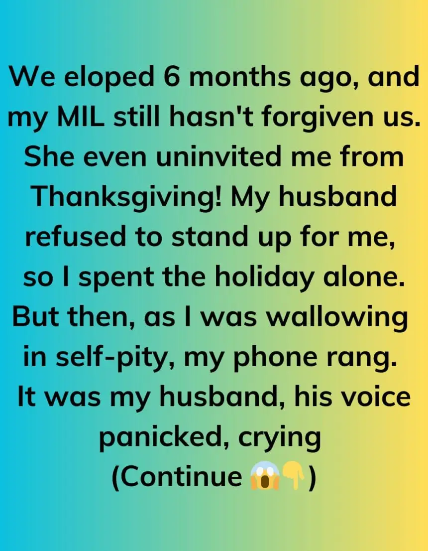 She even uninvited me from Thanksgiving! Mark didn’t even try to defend me. He just shrugged and said, “It’s just Thanksgiving, you can spend it alone.