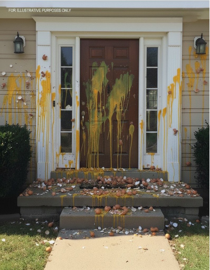 The moment my foot hit the porch I knew the day would be awful. My front door was coated in eggs. Thick yellow rivers ran down the white paint like tears.