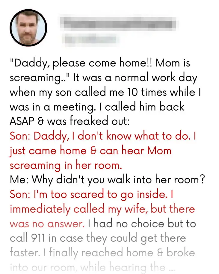 “Daddy, I don’t know what to do. I just came home and now I hear mom screaming in her room!”