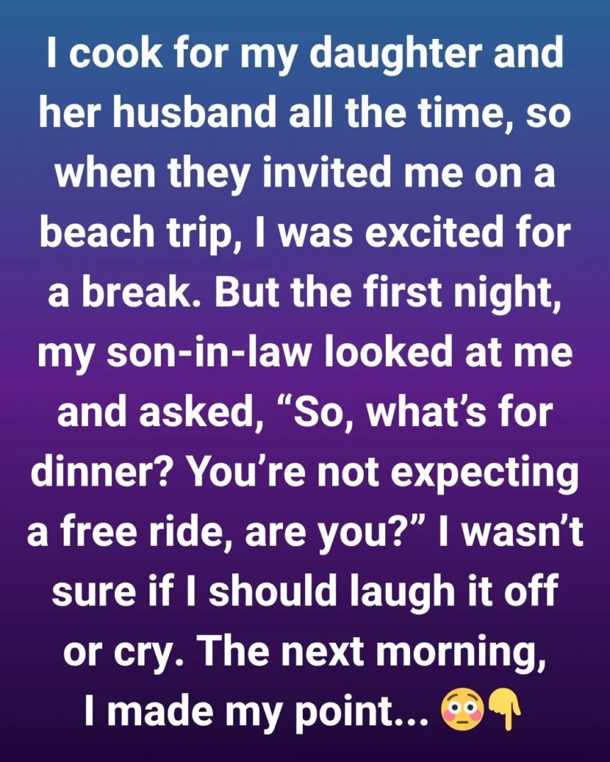 I was genuinely excited. But the moment we arrived, my son-in-law turned to me and said, “So, what’s for dinner? You’re not expecting a free ride, are you?” I wasn’t sure if I should laugh it off or cry.