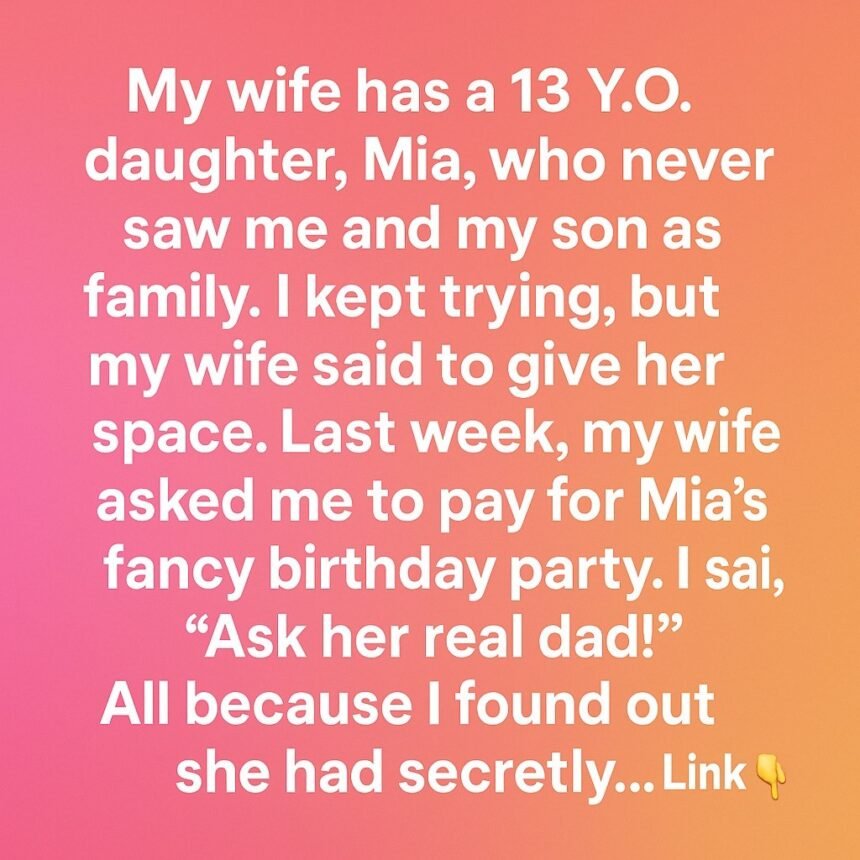 My wife has a 13-year-old daughter, Mia, who never saw me and my son as family. I kept trying, but my wife always told me to give her space. Last week, my wife asked me to pay for Mia’s fancy birthday party.