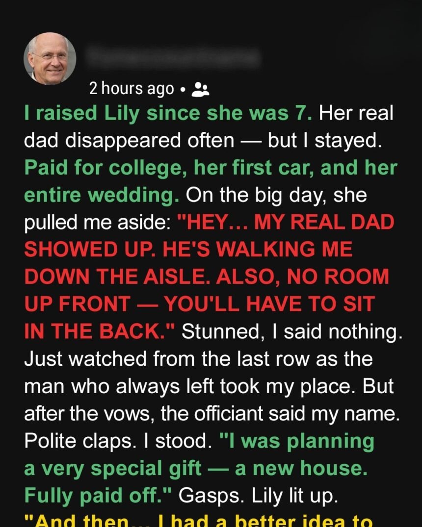 Daniel had raised Lily since she was seven, stepping in when her biological father, Craig, drifted in and out of her life. He was there for every scraped knee, every heartbreak, and every milestone. He paid for her education, her first car, and, when she got engaged, her entire wedding.