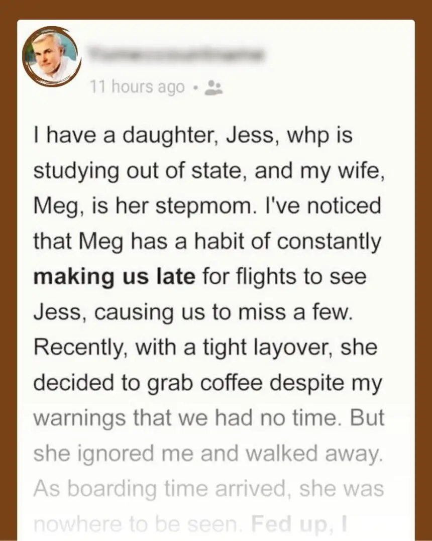 A 47-year-old man boarded a plane on the way to see his daughter after his 43-year-old wife left to get Starbucks in the airport.
