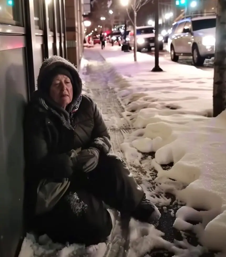 She looked up, and my heart clenched. Her face was weathered but elegant, with clear blue eyes that reminded me of my grandmother’s. She tried to smile, but her lips trembled from the cold.