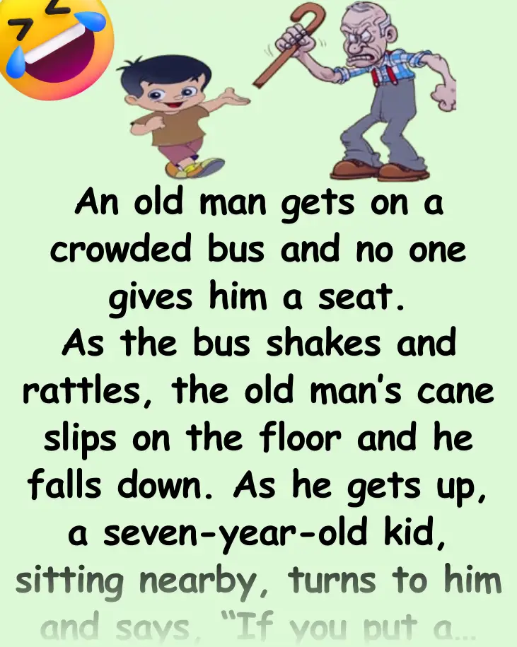 As he gets up, a seven-year-old kid, sitting nearby, turns to him and says,