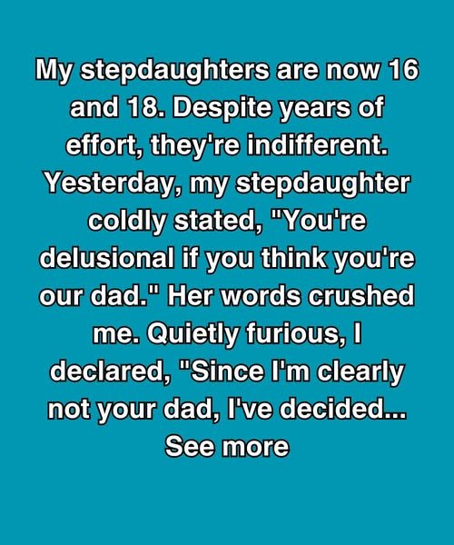 My stepdaughters are now 16 and 18. Despite years of effort, they’re indifferent. Yesterday, my stepdaughter coldly stated, “You’re delusional if you think you’re our dad.” Her words crushed me.
