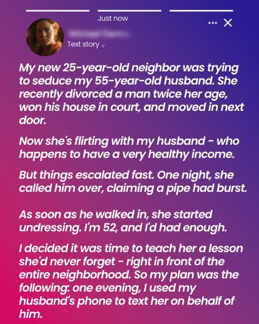 I’m 52, and I’d had enough. I decided it was time to teach her a lesson she’d never forget – right in front of the entire neighborhood. So my plan was the following: one evening, I used my husband’s phone to text her on his behalf.