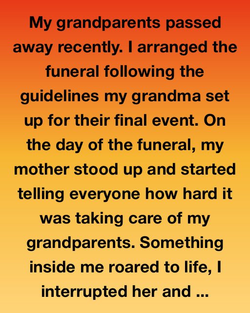 Some hugged me. Some said, “Thank you for saying what needed to be said.” Others shared little stories about my grandparents—things I didn’t even know. Like how Grandpa used to leave flowers on the steps of the lonely widow three houses down.