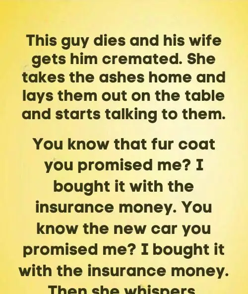This guy dies and his wife gets him cremated.